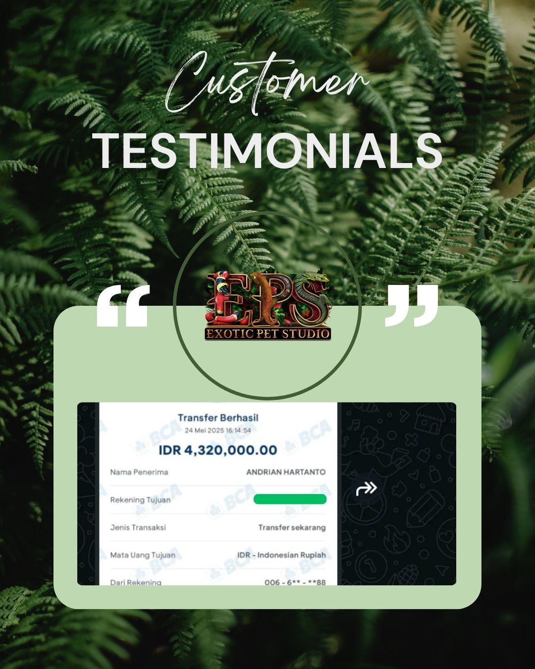 Setelah semua detail dikonfirmasi, kami akan buatkan link produk khusus berisi reptil pilihanmu + biaya pengiriman — langsung siap masuk ke keranjang belanja.